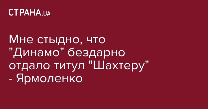 После досрочного завоевания донецким "Шахтером" десятого титула, капитан киевского "Динамо" Андрей Ярмоленко признался, что ему стыдно, что киевляне безвольно уступили в борьбе за первое место.