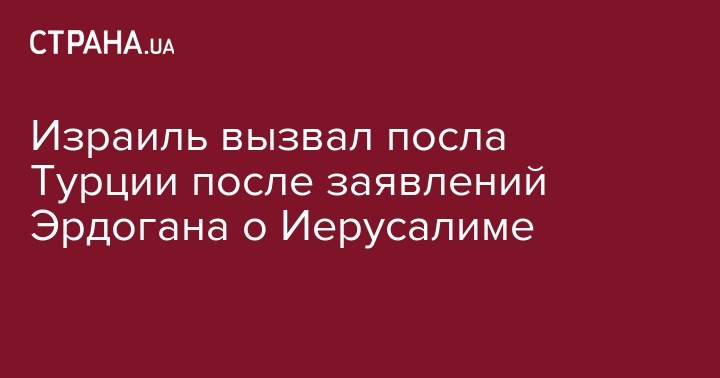 Израиль вызвал посла Турции после заявлений Эрдогана о Иерусалиме
