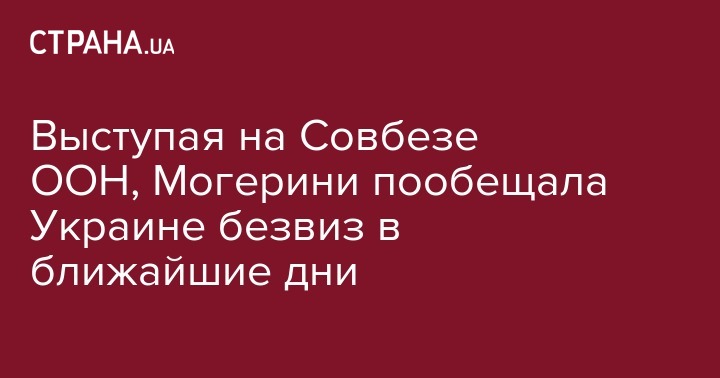 Руководство Европейского союза в ближайшие дни объявит об упрощении визового режима с Украиной. Об этом заявила верховный представитель ЕС по иностранным делам и политике безопасности Федерика Могерини, выступая на заседании Совета Безопасности ООН.