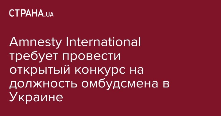 Международная правозащитная организация Amnesty International требует от Верховной Рады провести открытый конкурс на должность уполномоченного по правам человека. Об этом сообщают "Украинские новости".