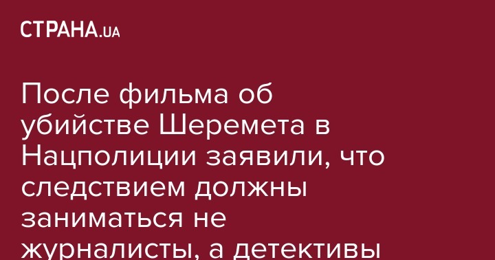 После фильма об убийстве Шеремета в Нацполиции заявили, что следствием должны заниматься не журналисты, а детективы