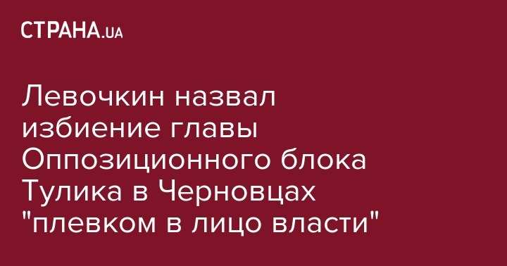 Избиение председателя Черновицкой городской организации Оппозиционного блока Руслана Тулика в день, когда ЕС предоставил Украине безвизовый режим - это плевок в лицо власти. Об этом заявил народный депутат от Оппозиционного блока Сергей Лёвочкин, передает сайт "Оппоблока".