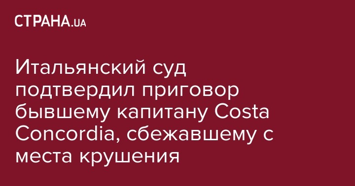 В Италии Кассационный суд окончательно подтвердил ранее вынесенный и подтвержденный судами низших инстанций приговор бывшему капитану круизного судна Costa Concordia, а именно 16 лет лишения свободы. Об этом сообщает Укринформ.