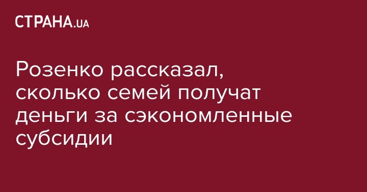 Розенко отметил, что теплокоммунэнерго (ТКЭ) и облгазы обязаны до 1 июня передать в управления социальной защиты населения перечень семей, которые сэкономили субсидии, после чего они будут проверены и до 1 июля будет сформирован перечень для выплаты монетизированного остатка субсидии в сумме до 700 грн (эквивалент 100 куб. м газа), а сами выплаты будут осуществлены до сентября.