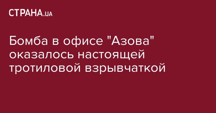 Взрывотехники подтвердили, что устройство, найденное закрепленным на окне центрального офиса "Национального корпуса" ("Азов") в Киеве, является настоящей тротиловой взрывчаткой. Об этом говорится в сообщении пресс-службы партии.