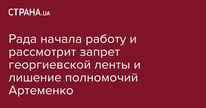 Рада начала работу и рассмотрит запрет георгиевской ленты и лишение полномочий Артеменко
