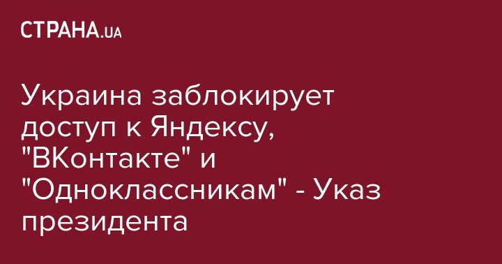 Украина заблокирует доступ к Яндексу, "ВКонтакте" и "Одноклассникам" - Указ президента