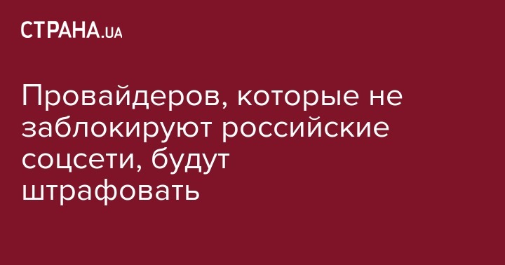 Интернет-провайдеров, которые не выполнят решение СНБО о запрете российских социальных сетей ВКонтакте и Одноклассники, а также других ресурсов из списка, будут штрафовать. Об этом говорится на сайте Нацкомиссии, осуществляющей государственное регулирование в сфере связи и информатизации.