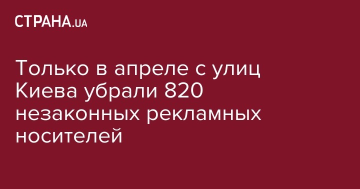 В течение апреля в Киеве демонтировано 820 незаконных рекламных носителей, передает пресс-служба КГГА.