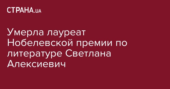 Во Франции умерла лауреат Нобелевской премии по литературе 2015 года Светлана Алексиевич. Об этом сообщила 18 мая в Twitter министр культуры Франции Франсуаз Ниссен.