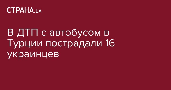 "В результате аварии из 18 человек, которые находились в автобусе (16 украинских туристов, гид и водитель) 2 человека были госпитализированы, а 16 лицам была предоставлена амбулаторная медицинская помощь. Угроза жизни двум госпитализированным отсутствует", - сообщили в офисе по вопросам культуры и туризма посольства Турции в Украине, передает "Интерфакс Украина".