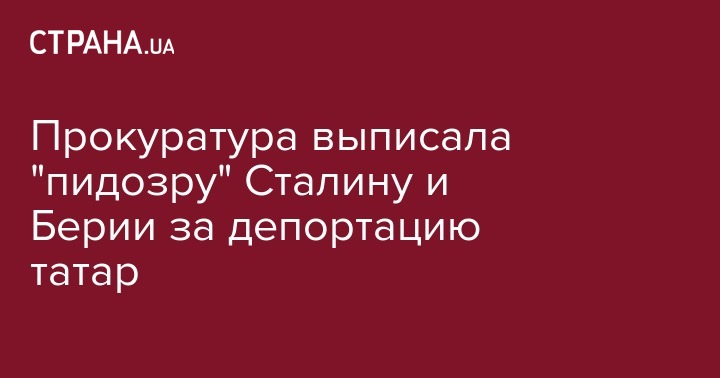 Украинская прокуратура Крыма подписала сообщение о подозрении Иосифу Сталину и Лаврентию Берии в насильственном массовом переселении в 1944 году крымских татар и представителей других национальных групп с территории Крымской АССР. Об этом сообщает пресс-служба ГПУ.