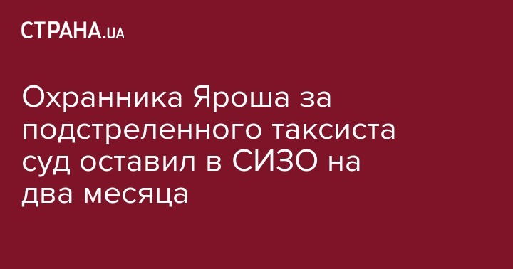 Охранника народного депутата Украины Дмитрия Яроша, который подозревается в огнестрельном ранении таксиста, оставили под стражей на 60 дней без права освобождения под залог. Об этом сегодня в Днепре сообщил адвокат подозреваемого Сергей Погосян, пишет "Радио Свобода".