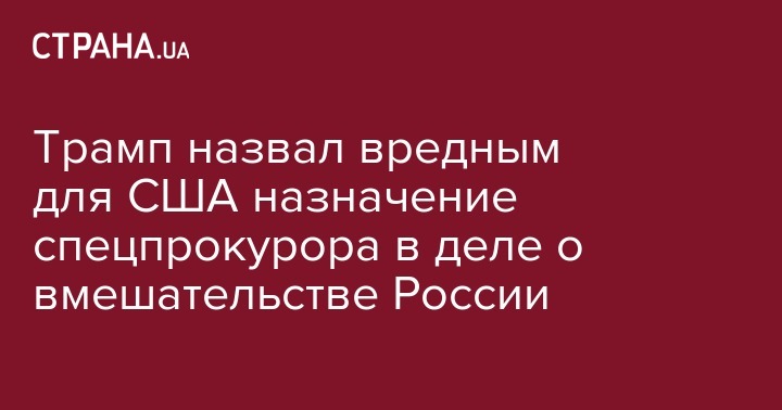 Трамп считает, что из-за назначения бывшего директора ФБР Роберта Мюллера спецпрокурором, который будет проверять сообщения о вмешательстве России в американские выборы, США выглядят разобщенными.