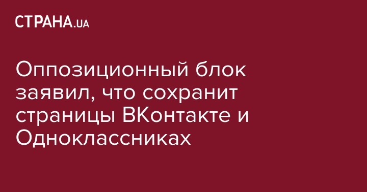 "Оппозиционный блок" сохранит свою страницу в социальных сетях "ВКонтакте" и "Одноклассники", заявил народный депутат от Оппозиционного блока Юрий Павленко.