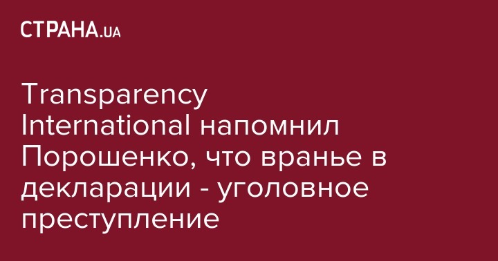 Международная антикоррупционная неправительственная организация Transparency International считает недекларирование Президентом Петром Порошенко вкладов в офшорные компании нарушением антикоррупционных стандартов, говорится в сообщении пресс-службы организации, передают Украинские Новости.