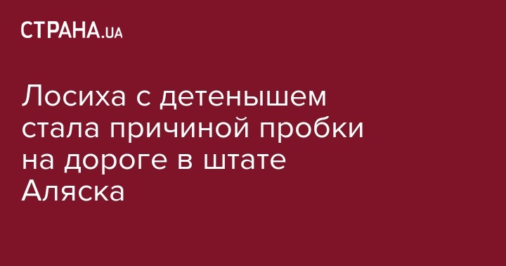 Самка лося с детенышем прошлась по шоссе на Аляске, чем привлекла к себе повышенное внимание водителей и вызвала пробку.