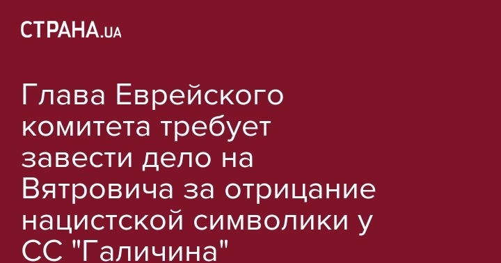 Глава Еврейского комитета требует завести дело на Вятровича за отрицание нацистской символики у СС "Галичина"