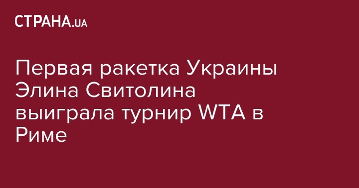 Украинская теннисистка Элина Свитолина в финале турнира WTA в Риме обыграла румынку Симону Халеп со счетом 4:6, 7:5, 6:1 в результате чего стала победительницей соревнований, чей суммарный призовой фонд составляет $2,776 млн.
