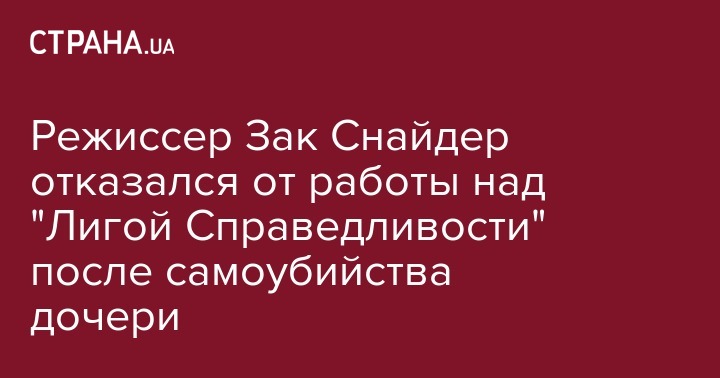 В понедельник, 22 мая голливудский режиссер Зак Снайдер сообщил о прекращении работы над фильмом "Лига справедливости", ради нормализации обстановки в семье. Ранее его дочь Отем покончила с собой. В марте ей было 20 лет. Об этом сообщает "Медуза".