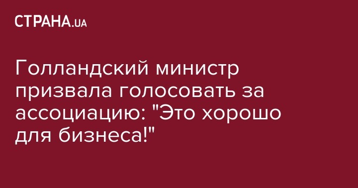 Министр внешней торговли Нидерландов Лилиан Плумен призвала граждан страны голосовать за Соглашение об ассоциации между Украиной и ЕС на референдуме, который пройдет 6 апреля.