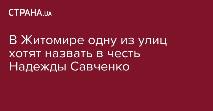 В честь Надежды Савченко в Житомире планируют назвать одну из городских улиц. Электронная петиция зарегистрирована на сайте городского совета Житомира. Автор петиции подчеркнул, что свой военный путь Надежда Савченко начинала именно в Житомирской 95-й аэромобильной бригаде. Подобным образом автор петиции предлагает оказать поддержку Савченко.