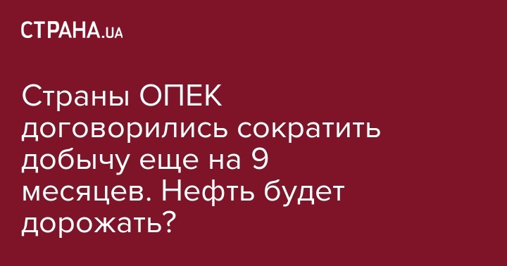 Страны-члены "Организации стран – экспортеров нефти" (ОПЕК) в ходе встречи в Вене договорились на девять месяцев продлить действие решения о сокращение добычи нефти, сообщает Reuters.