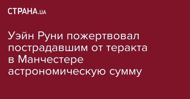 Бомбардир футбольного клуба "Манчестер Юнайтед" и сборной Англии Уэйн Руни пожертвовал £100 тыс. фунтов стерлингов (около $ 126 тыс.) семьям погибших и пострадавших от манчестерского теракта. Об этом сообщает британский таблоид Daily Mirror.