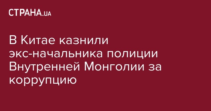 Сегодня утром, 26 мая в Китае казнили бывшего начальника полиции автономного района Внутренняя Монголия, который был признан виновным в совершении убийства и коррупции. Об этом сообщает Reuters.