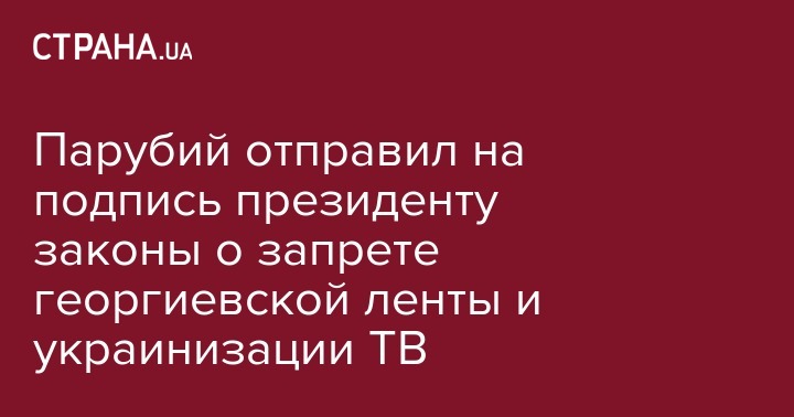 Спикер Верховной Рады Андрей Парубий подписал законы о запрете георгиевской ленты в Украине и введении 75%-й квоты украинского языка на телевидении. Об этом сообщает "112 Украина".