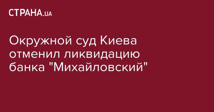 Окружной админсуд Киева по иску единственного собственника банка "Михайловский", компании "Экосипан", отменил решение о ликвидации банка. Об этом сообщает Finclub.