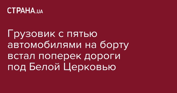 Грузовик с пятью автомобилями на борту встал поперек дороги под Белой Церковью
