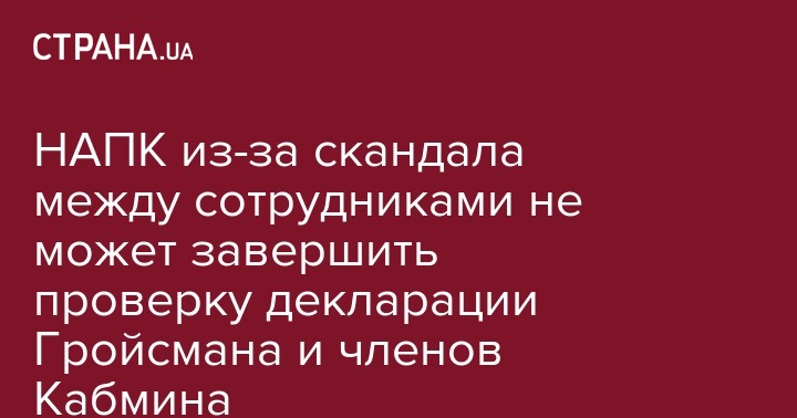 Нацагентство по вопросам предотвращения коррупции на заседании во вторник, 30 мая, так и не смогло утвердить результаты проверок е-деклараций премьера Владимира Гройсмана и остальных членов Кабмина. Об этом сообщила журналистам глава НАПК Наталья Корчак, передает Украинская правда.