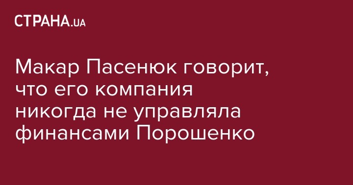 Макар Пасенюк говорит, что его компания никогда не управляла финансами Порошенко