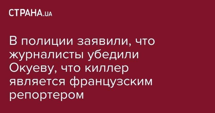 Директор департамента коммуникации МВД Артем Шевченко заявил, что перед встречей с киллером, в журналистском кругу подтвердили Амине Окуевой, что этот мужчина был репортером из Франции. Об этом сообщает "112 Украина".
