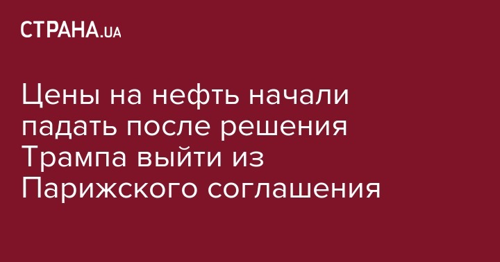 Цены на нефть в пятницу, 2 июня, начали падение после озвученного решения президента США Дональда Трампа выйти из Парижского соглашения по климату. Об этом свидетельствуют данные биржевых торгов, передает "Укринформ".
