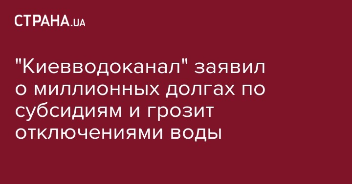 ЗАО "Киевводоканал" заявляет о долге перед компанией государства по субсидиям и льготам только за текущий год в 78 млн 413 тыс. грн. Об этом сообщает пресс-служба предприятия в Facebook.