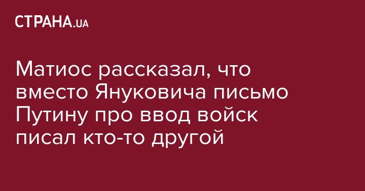 Главный военный прокурор Анатолий Матиос в интервью "РБК-Украина" рассказал, что, по его данным, экс-президент Виктор Янукович не писал лично то самое письмо Владимиру Путину с просьбой ввести войска. Он просто подписал уже готовый текст.