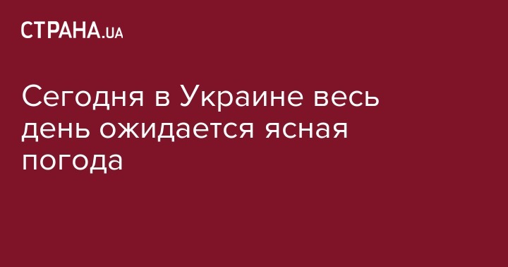Сегодня в Украине весь день ожидается ясная погода