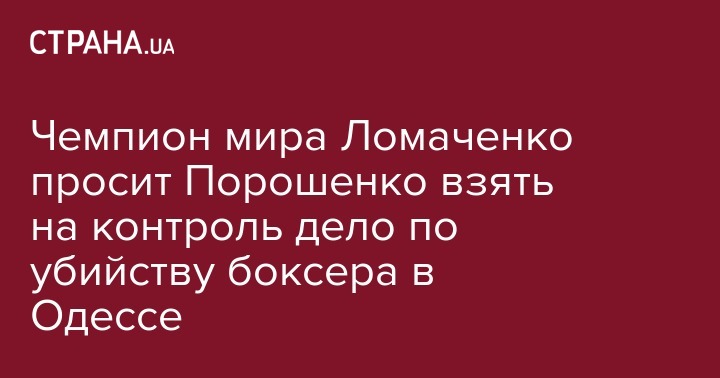 Чемпион мира Ломаченко просит Порошенко взять на контроль дело по убийству боксера в Одессе