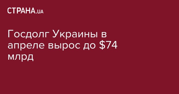 Так, совокупный государственный (прямой и гарантированный) долг Украины в апреле вырос на 2,69% ($1,95 млрд), до $74,31 млрд.