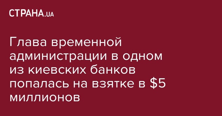Сегодня, 7 июня, в Киеве задержали на взятке в 5 миллионов долларов главу временной администрации в одном из киевских банков. Об этом сообщила пресс-секретарь генпрокурора Лариса Сарган в Facebook.