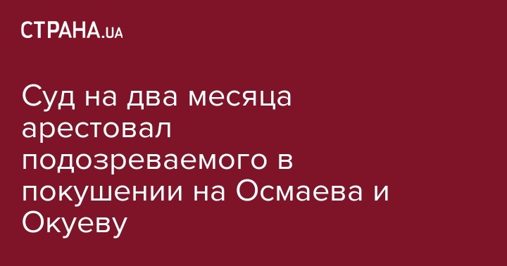 Суд в Киеве избрал меру пресечения в виде содержания под стражей в течении 60 суток без права внесения залога злоумышленнику, который подозревается в покушении на жизнь командира батальона им. Джохара Дудаева Адама Осмаева и его жены Амины Окуевой.