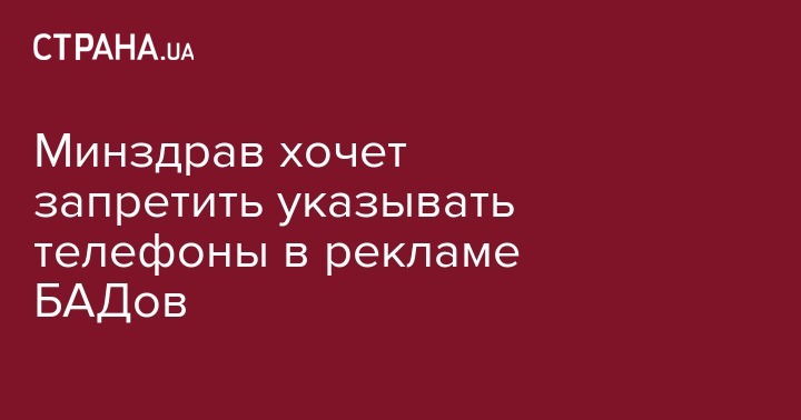 Министерство здравоохранения предлагает запретить указывать в рекламе биологически активных добавок (БАД) контактные телефоны. Такое предложение содержится в проекте закона о внесении изменений в статью 21 закона "О рекламе", передает "Интерфакс-Украина".