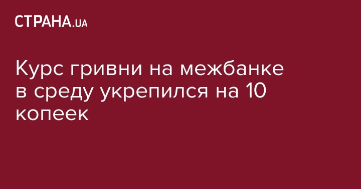Курс гривни на межбанке в среду укрепился на 10 копеек