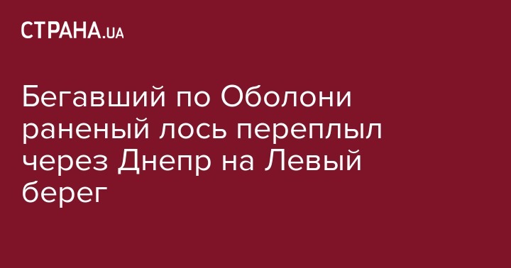 Раненного лось, скорее всего того самого, которого с утра заметили на киевской Оболони, увидели плывущим через Днепр на Левый берег. Видео с плывущим через реку животным разместил пользователь Facebook, который в это время катался на яхте по реке.