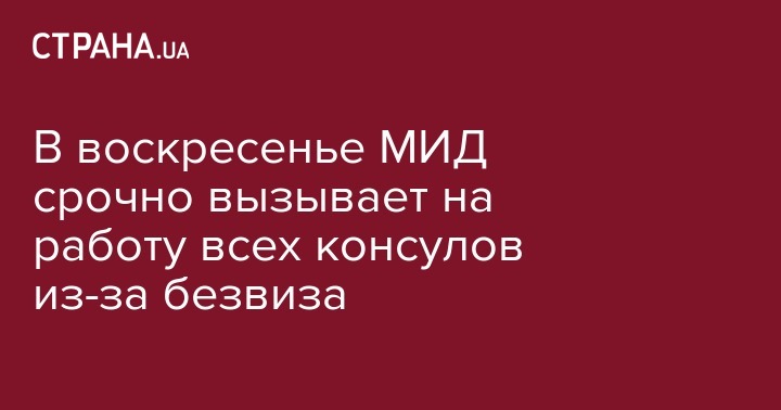 Департамент консульской службы МИД вызывает всех консулов на свои рабочие места к вступлению в силу безвизового режима с ЕС. Об этом говорится в сообщении департамента консульской службы МИД в Facebook