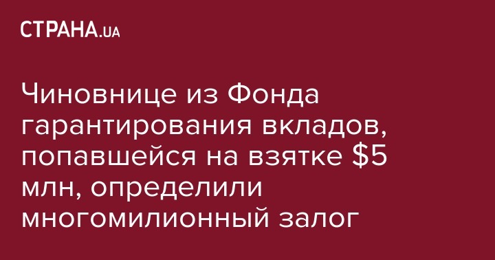 Чиновнице из Фонда гарантирования вкладов, попавшейся на взятке $5 млн, определили многомилионный залог