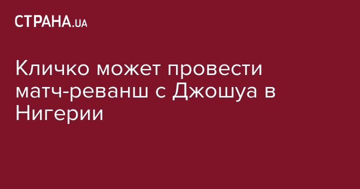 Бой-реванш между украинским боксёром Владимиром Кличко и британцем Энтони Джошуа может состояться в Нигерии. Об этом сообщает The Sun со ссылкой на промоутера Джошуа Эдди Хирна.