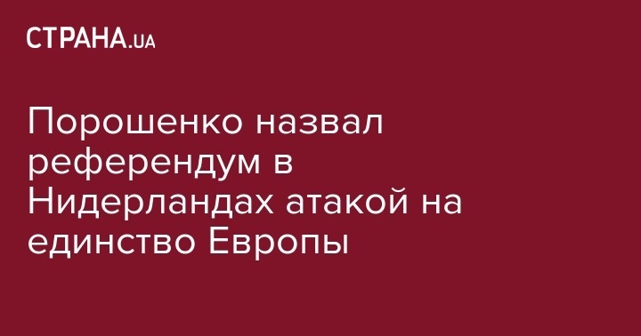 Президент  Петр Порошенко считает, что референдум в Нидерландах относительно Соглашения об ассоциации Украина-ЕС был направлен против единства Европы и европейских ценностей, передает Интерфакс.